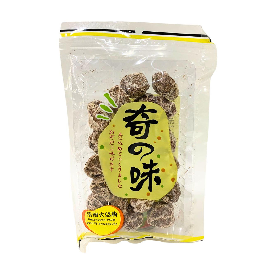 A Ameixa Preservada Doce e Salgada Preserved Plum 蜜饯话梅 é um clássico snack oriental, muito popular no Japão, China e em outros países da Ásia. As ameixas são cuidadosamente selecionadas, desidratadas e preservadas em mistura de sal, açúcar e condimentos, resultando em uma fruta seca de sabor agridoce e levemente salgado, com aroma marcante.