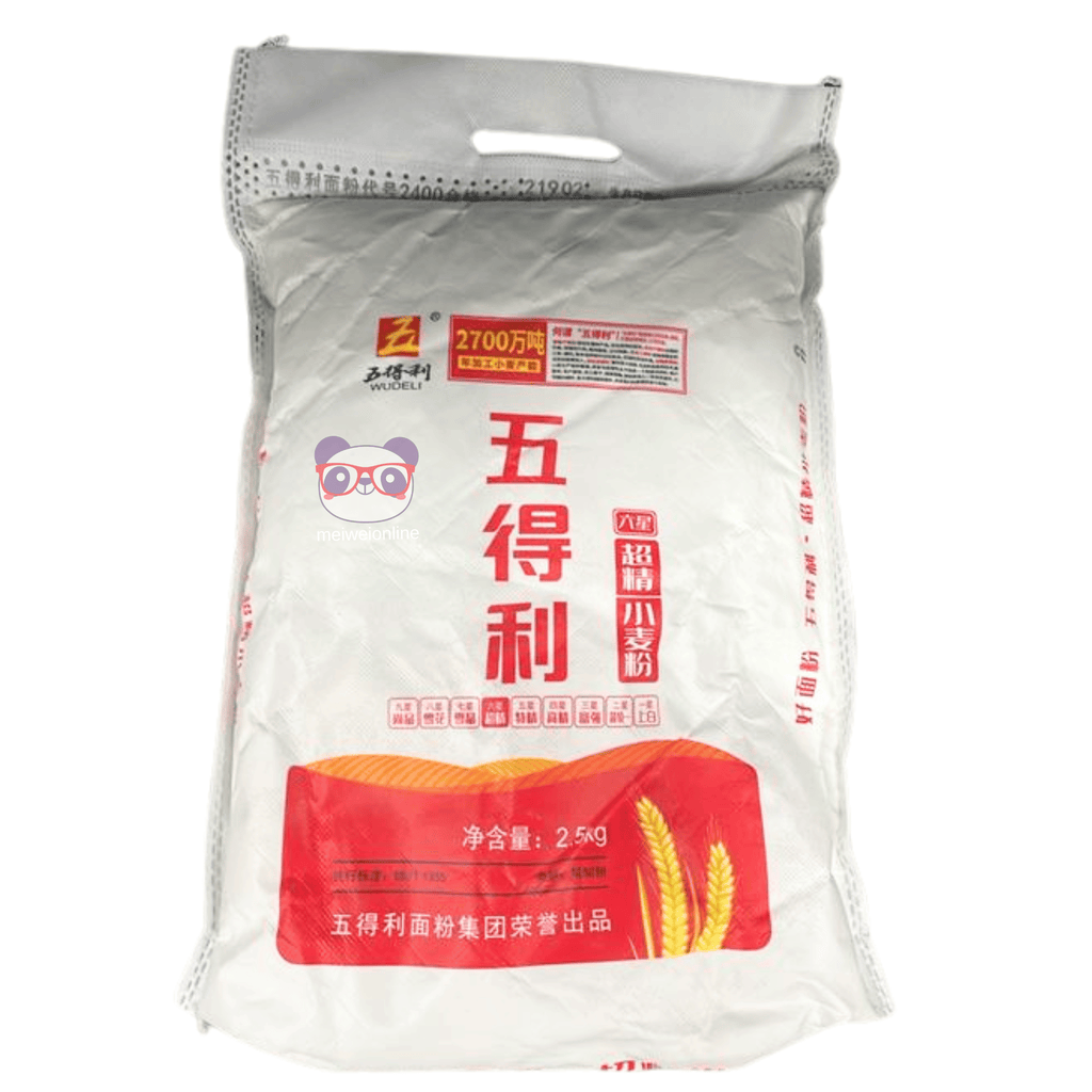 A Farinha de Trigo Super Fina Wudeli 五得利 超精小麦粉 2,5kg é uma farinha branca de alta qualidade, produzida pela tradicional Wudeli Flour Group, um dos maiores moinhos de trigo da China.